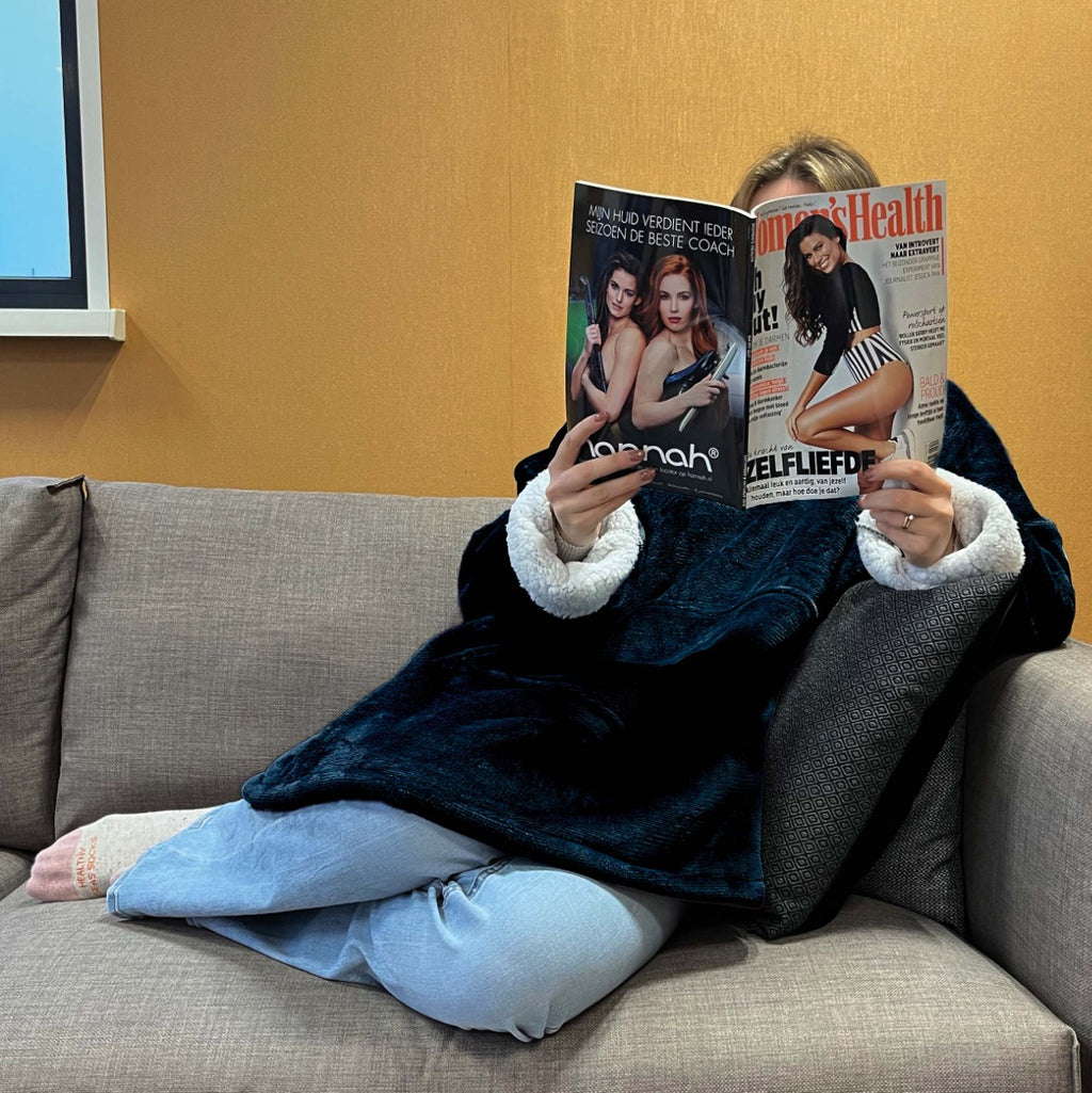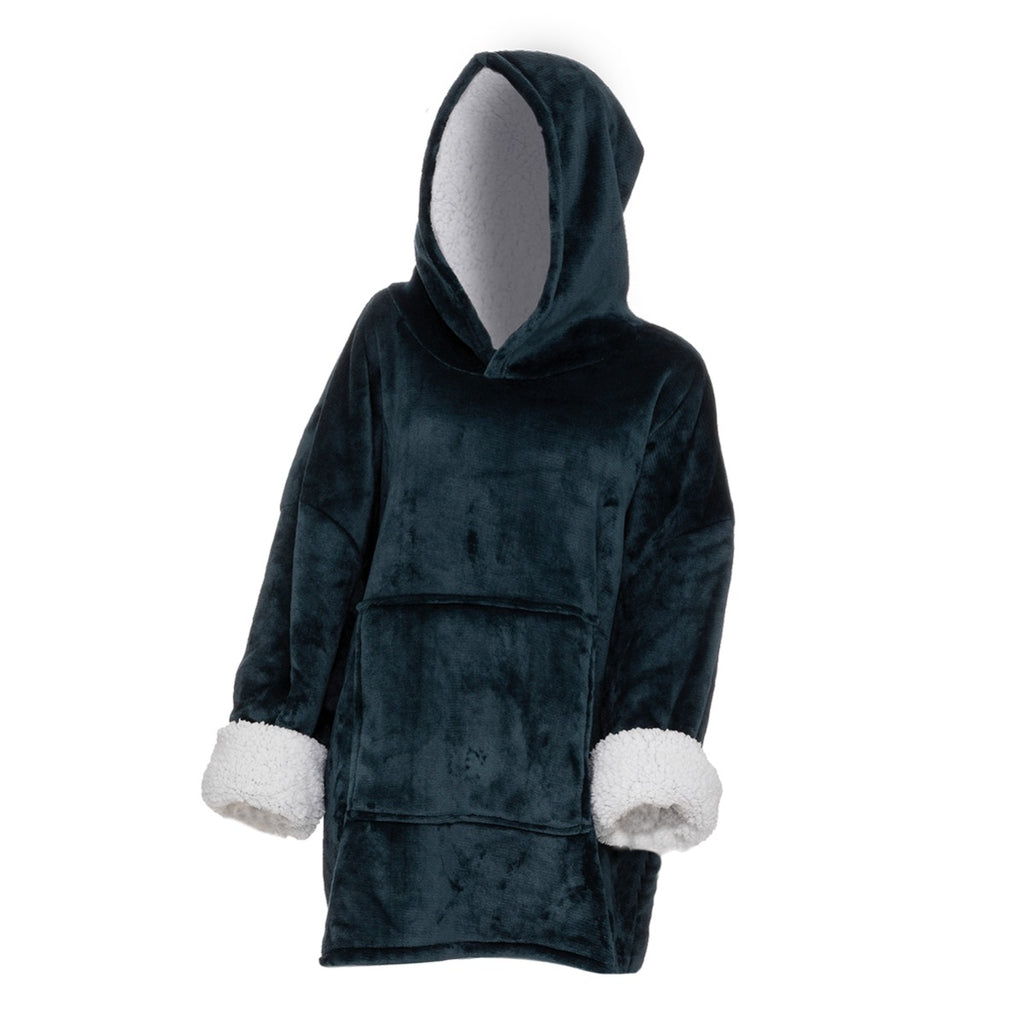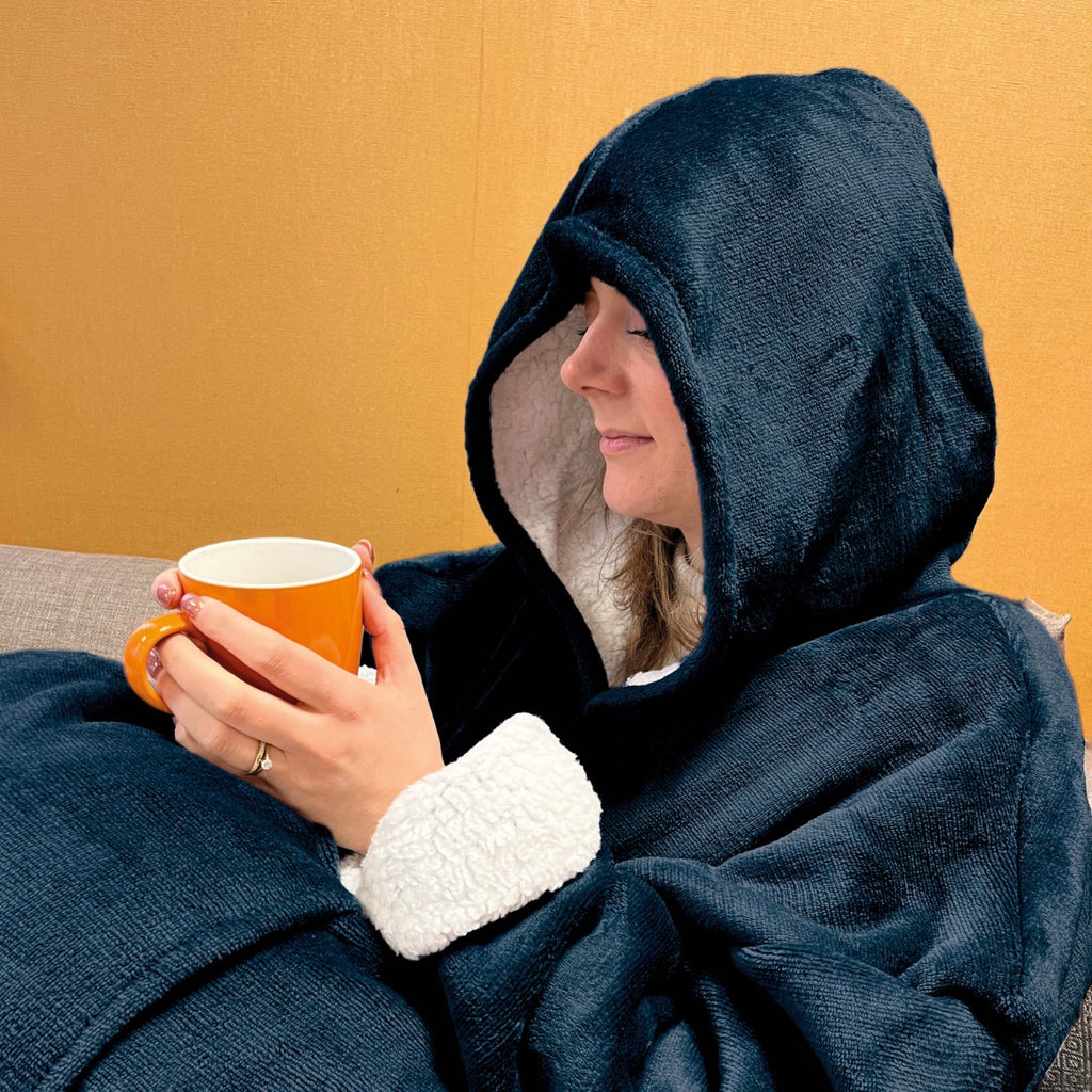 Großer bequemer Kapuzenpullover und Decke in 1 Sind Sie immer kalt? Dann kuschel dich mit diesem tragbaren Kapuzenpulli auf die Couch und du hast es warm und bequem. Dieser große, bequeme Kapuzenpulli und die Decke in einem haben ein weiches Sherpa-Futter und eine Fleece-Außenseite, die dich in den kalten Wintermonaten schön warm halten werden. Tragen Sie die Decke mit Ärmeln und Kapuze beim Liegen auf der Couch, bei der Arbeit, beim Camping und vielem mehr. Dank der großen Größe ist der Hoodie Plaid sowohl für Männer als auch für Frauen geeignet. Unisex-Kapuzenpulli für Jung und Alt Der Vorteil des großen Kuschelpullis ist, dass Sie sich mit dem ultraweichen Teddy-Sherpa-Fleece komplett zudecken können. Ziehen Sie die Beine ein, um sie vollständig zu bedecken, und krempeln Sie die Ärmel hoch, um eine Kleinigkeit zu essen. Dank der praktischen Beuteltasche auf der Vorderseite bleiben auch die Hände warm. Da du die Kapuzendecke wie einen Pullover trägst, kannst du die herrliche Wärme überall genießen.