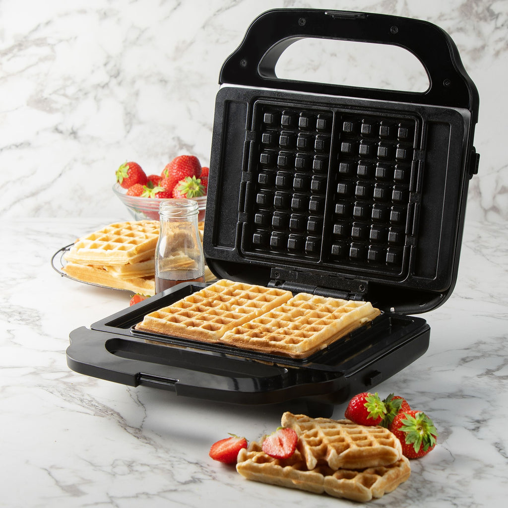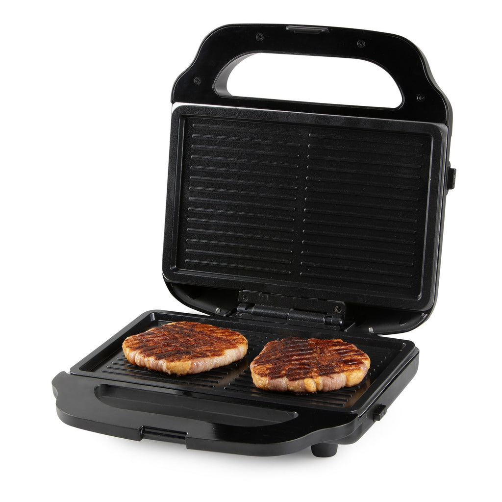 und bietet dennoch grosszügige Backflächen für XL-Sandwiches und Waffeln.