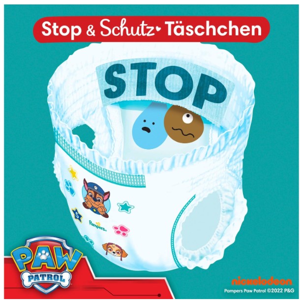 360° Fit schützt dich und dein Baby vor Auslaufen. Die auslaufsicheren Baby-Dry Pants von Pampers gibt es jetzt auch mit deinen Lieblingsfiguren aus Paw Patrol. Das Stop & Schutz Täschchen hilft, Auslaufen am Rücken zu verhindern, das 360° dehnbare Bauchbündchen passt sich den Bewegungen deines Babys an und die doppelten Beinbündchen verhindern Auslaufen rundum die Beinchen für bis zu 12 Stunden Rundum-Auslaufschutz. Genau wie für dich steht die Sicherheit deines Babys für Pampers an erster Stelle.