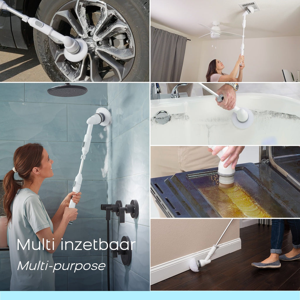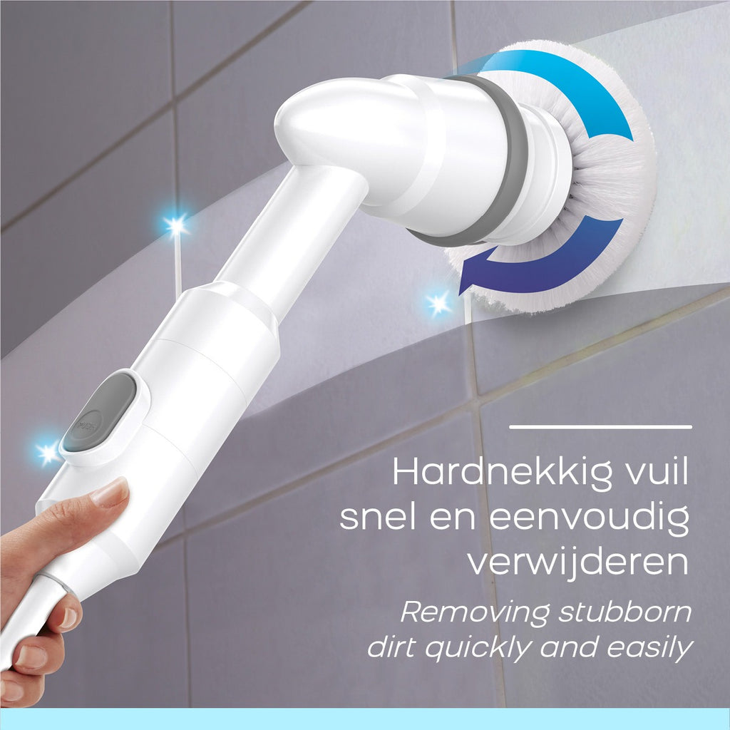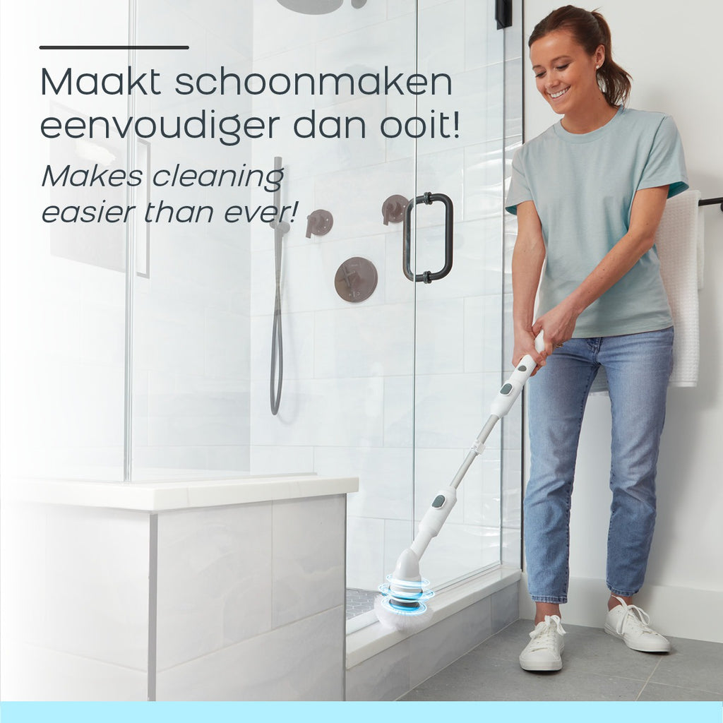 Voom Electric Spin Scrubber - Wiederaufladbare & Kabellose Scheuerbürste Erleben Sie den Komfort und die Kraft des Voom Electric Spin Scrubber, die perfekte Lösung für die Entfernung von hartnäckigem Schmutz schnell und einfach. Diese leichte, kabellose Schrubbbürste ist mit einem leistungsstarken Motor mit 300 Umdrehungen pro Minute und einer Leistung von 5,5 W ausgestattet und damit ideal für Badewannen, Duschen, Waschbecken, Fußleisten, Böden, Autofelgen und vieles mehr. Mit dem verstellbaren Rohr, das von 48 cm bis 86 cm reicht, erreichen Sie mühelos sowohl hohe Ecken als auch niedrige Stellen, ohne sich bücken oder strecken zu müssen. Der wiederaufladbare 1300-mAh-Akku bietet eine Laufzeit von bis zu 60 Minuten*, sodass Sie sich ohne lästige Kabel frei bewegen können. Dank des wasserfesten Designs ist diese Schrubbbürste langlebig und für den Einsatz in nassen Umgebungen geeignet. Der Voom Spin Scrubber wird mit zwei austauschbaren Bürsten für unterschiedliche Reinigungsaufgaben, einem USB-C-Ladekabel und einer klaren Anleitung geliefert. Egal, ob Sie hartnäckige Flecken oder alltägliche Verschmutzungen bekämpfen wollen, diese vielseitige Schrubbbürste macht die Reinigung einfacher als je zuvor! Das Set enthält: Voom Electric Spin Scrubber - Zwei austauschbare Bürsten (für schwere und allgemeine Reinigung) - Verstellbarer Griff (48 cm bis 86 cm) - USB-C-Ladekabel - Bedienungsanleitung